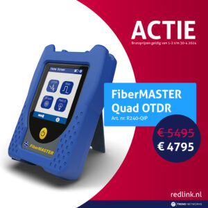 FiberMASTER Quad OTDR (R240-QIP): Test, troubleshoot and certificeer met deze eenvoudige touchscreen OTDR tester. Inclusief CertSoft PC rapportagesoftware.
