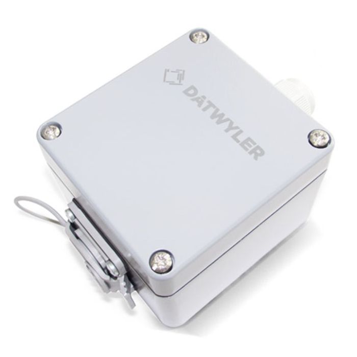 Stabiele behuizing van aluminium, grijs, gelijkaardig aan RAL 7035.