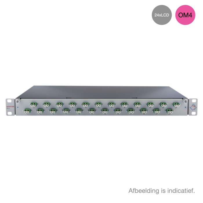Prefab Lade, OV-S, 24xLCD, 48 Pigtails OM4, RAL7035, Front offset horiz., Incl.ANT