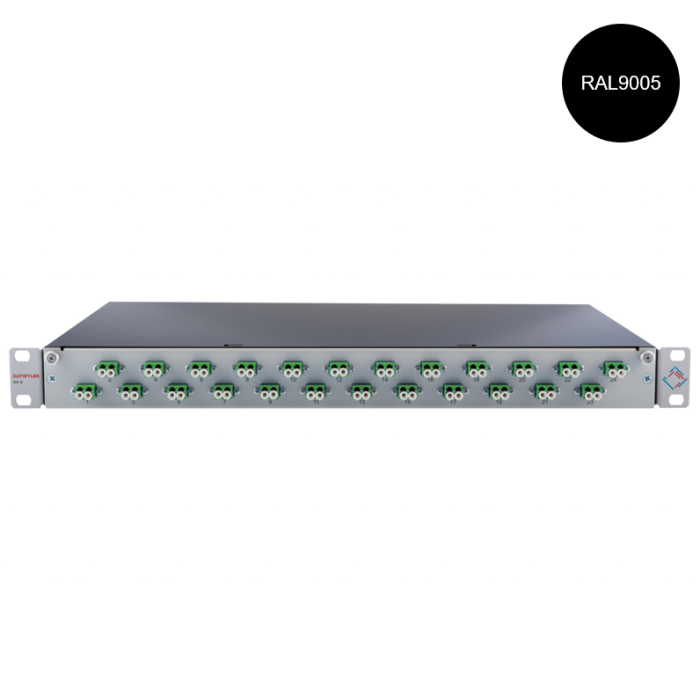 Prefab Lade, OV-S, 6xLCD, 12Ā Pigtails OS2, RAL9005, Front offset horiz., Incl.ANT