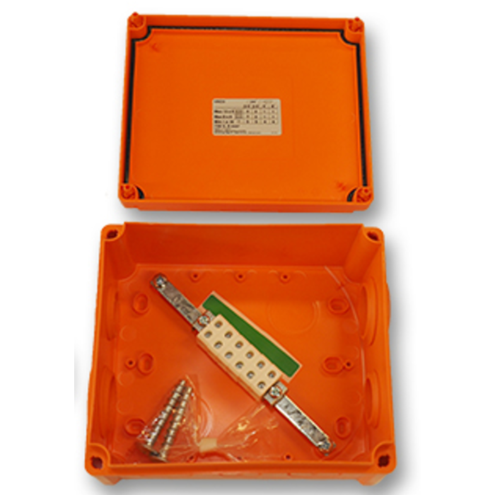 Junction Box VAD ... E30-E90 orange, 175x150x80mm, 6x KR6 + 2x PE 16 mm2, VAD 3 6x6 PE