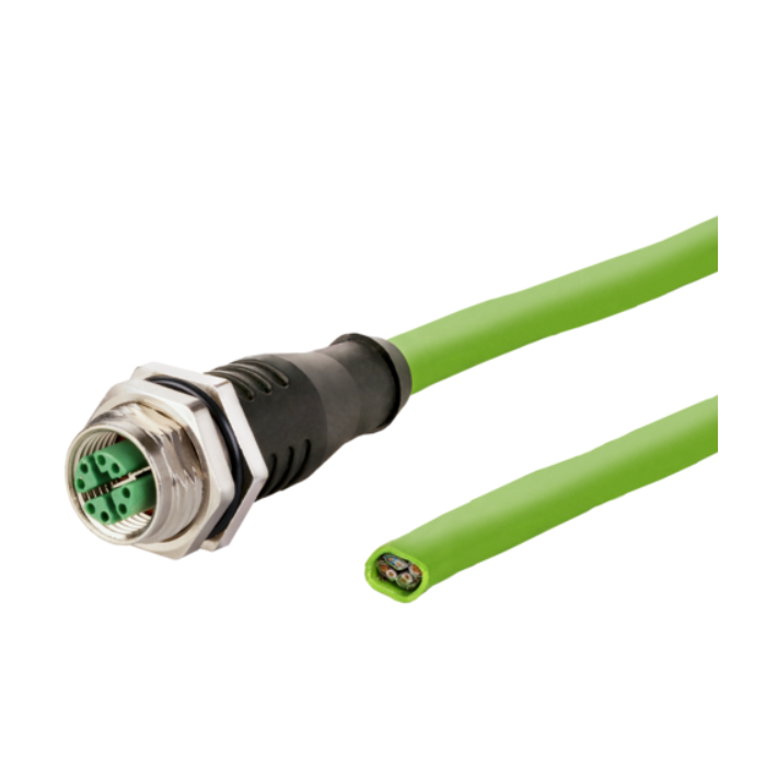 Aansluitkabel, M12 Female Flens recht - Open eind, 8-polig, Cat7, X-coded, PUR, 1m