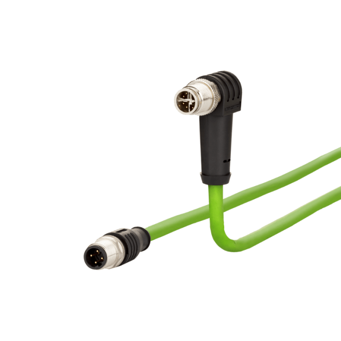 Adapterkabel, M12 Plug-recht - Plug-haaks, 8-polig, Cat7, X-coded, PUR, positie 135°, 2m