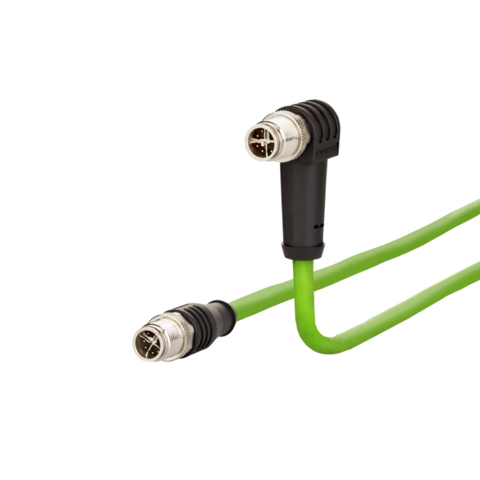 Adapterkabel, M12 Plug-recht - Plug-haaks, 8-polig, Cat7, X-coded, PUR, positie 225°, 5m