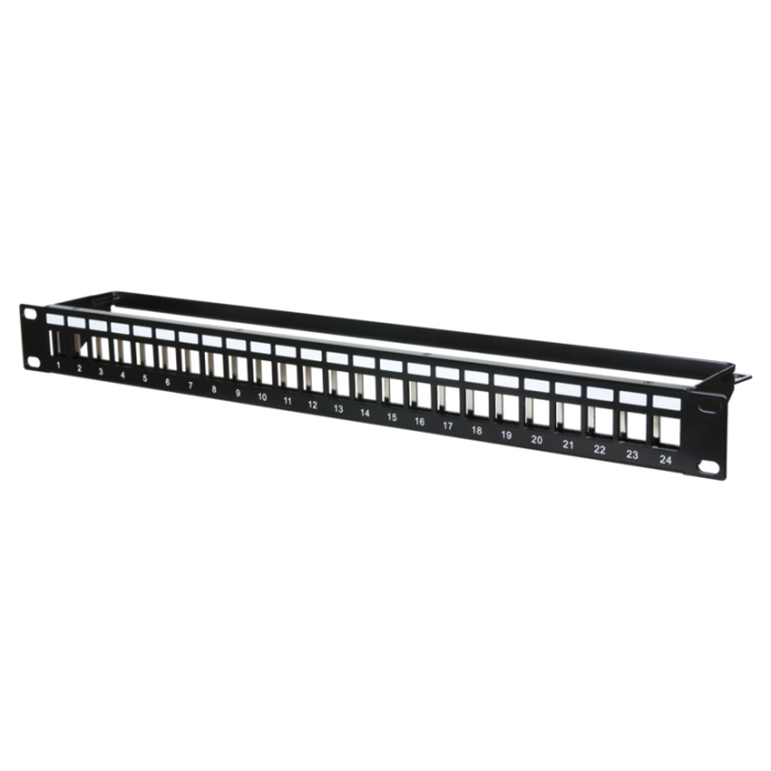 Patchpaneel, 19inch, 24V, 1HE, leeg tbv Shielded keystone fit, zwart