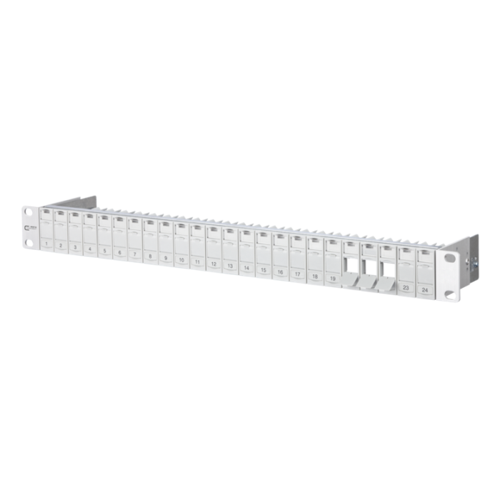 Patchpaneel, 19inch, 24V, 1HE, leeg tbv Unshielded Keystone fit, grijs