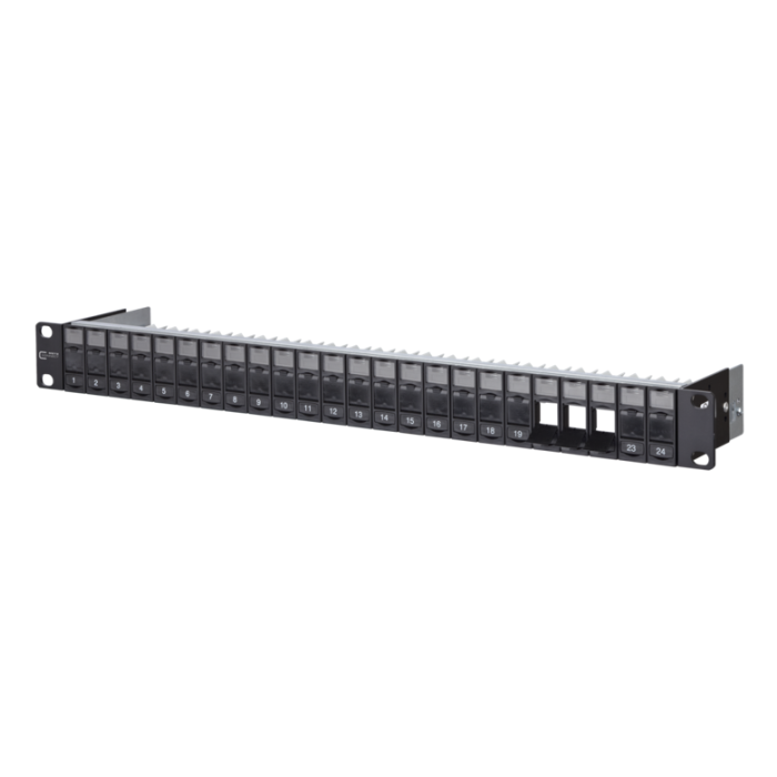 Patchpaneel, 19inch, 24V, 1HE, leeg tbv Unshielded Keystone fit, zwart