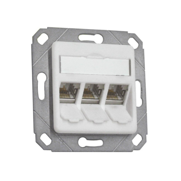Contactdoos, volgens Duitse standaard, schuine uitgang, voor de installatie van 2 of 3 RJ45 modules MS or MS-C6A (180° gedraaid).