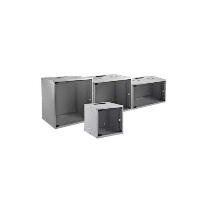 ProLine, Flatpack wandkast, grijs, 15HE, D600mm, rookglas deur+slot, IP20, borstel, 20 kooimoeren