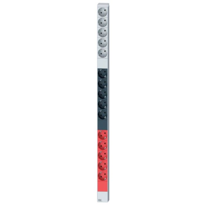 ProLine, Spanningsslof verticaal 15x Schuko, Allu.3 Fase, 3m snoer+CEE 16 A 5 polig rood