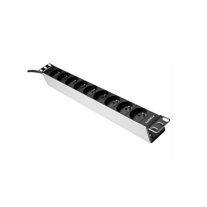 Ratio, Spanningsslof, 9x Aardpen (UTE) zwart, Aluminium, 19inch, 1x16A, snoer+stekker Schuko, 3m