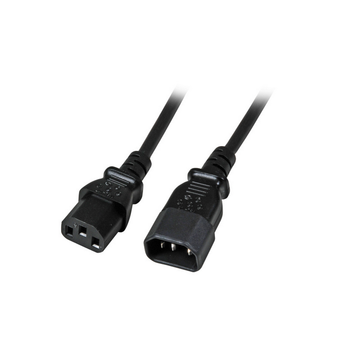 230v Netsnoer C14 Male naar C13 Female, 0.5m, 3x0.75mm², zwart