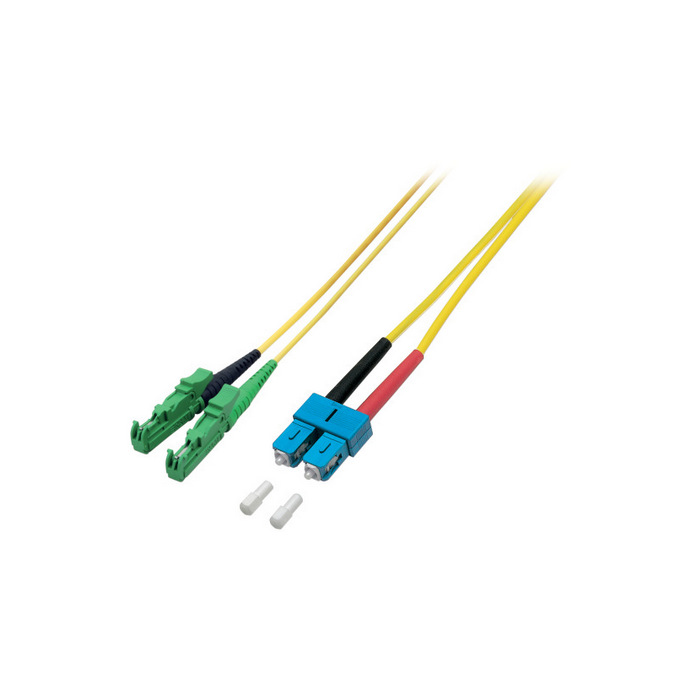 Glasvezel Patchkabel, OS2, DX, SC/pc-E2000/apc8, LSZH, Geel, 5m, Fig8, G657A