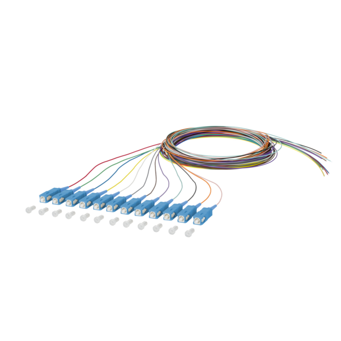 Pigtail OS2, SC/PC, G652D, 2m, set van 12 kleuren