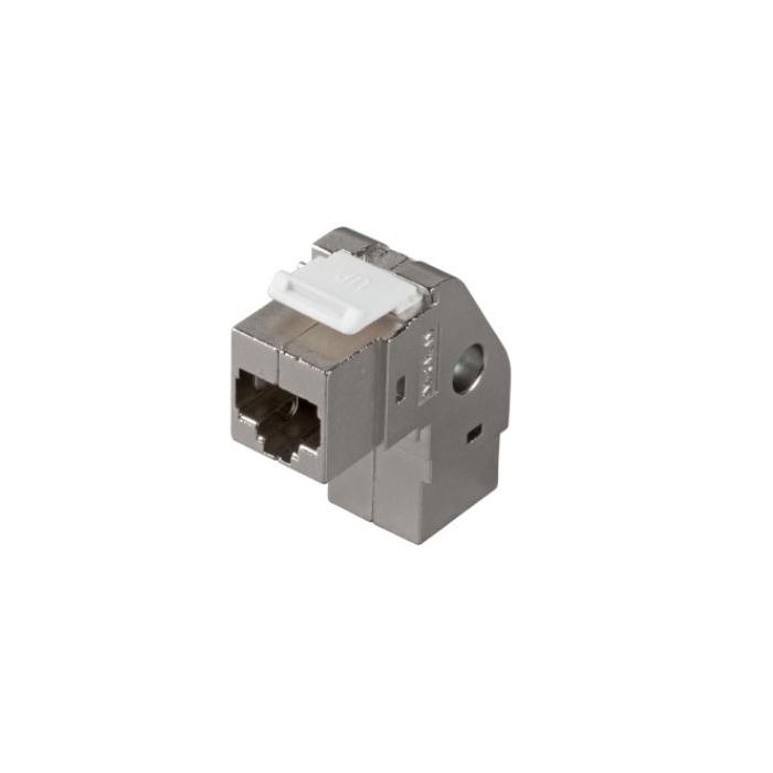 RJ45, Shielded koppelstuk Cat6A, haaks 90 graden, Keystone fit, metaal