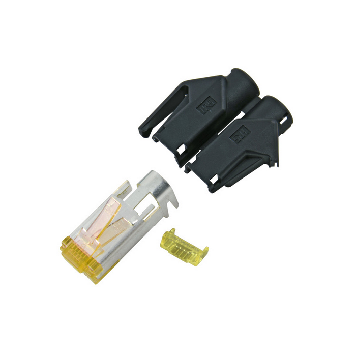 RJ45, STP, modulair Hirose plug, TM31+tule zwart, Cat6A, vpe