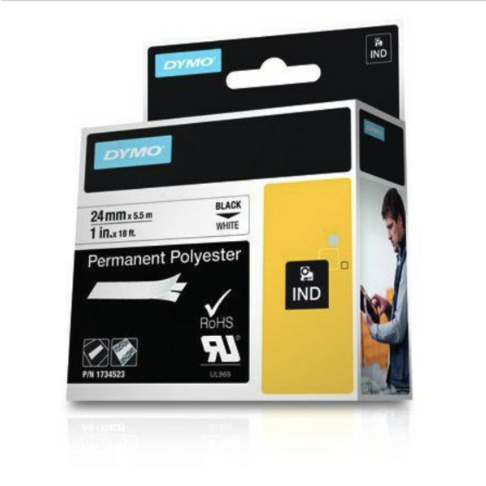 Rhino tape Permanent Polyester 24mm Wit (tekst zwart) tbv printer 4200/5200/6000