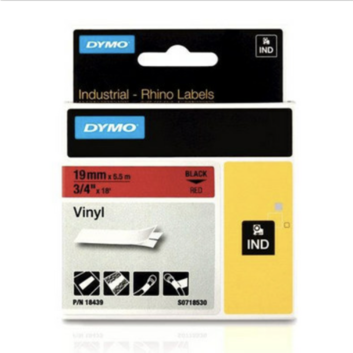 Rhino Tape Vinyl 19MM ROOD (tekst zwart op rood) tbv printer 4200/5200/6000