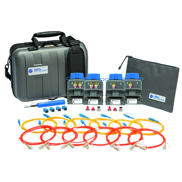 Twee multimode FiberTEK IV-modules, twee Single-mode FiberTEK IV-modules, afsluitbare semi-starre draagtas, SC, FC, ST-adapters voor modules (2 ea.), SC-SC patchkabels, 6 x 9 µm, 6 x 50 µm conform aan ISO / IEC 14763-3 standaard, beknopte handleiding. Compatibel met LanTEK IV.